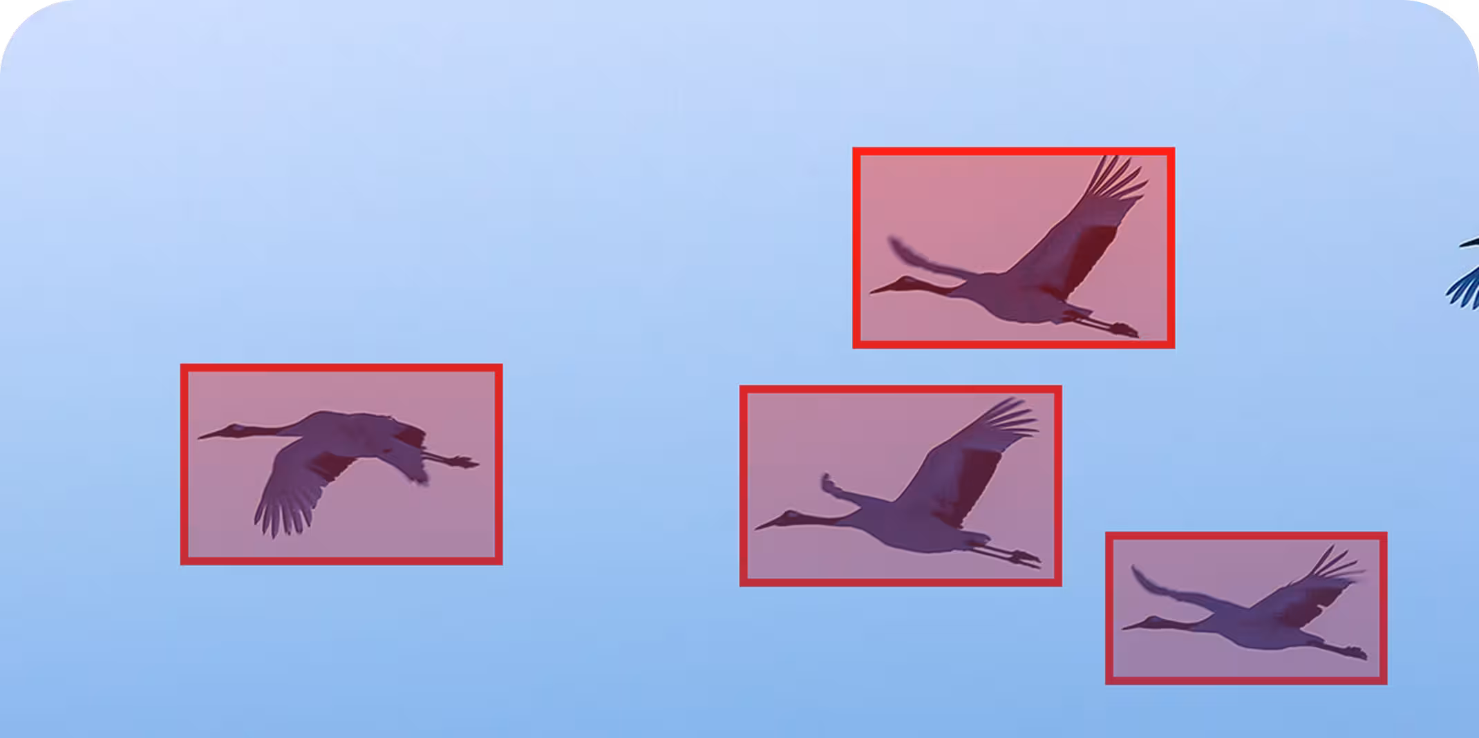 광각 카메라 + 줌 카메라 이중화로 최대 300m 거리 탐지, 딥러닝 기반 조류 종류 식별 및 군집 분석, 조류 이동 경로 예측 및 실시간 추적, 탐지율90% 이상 보장